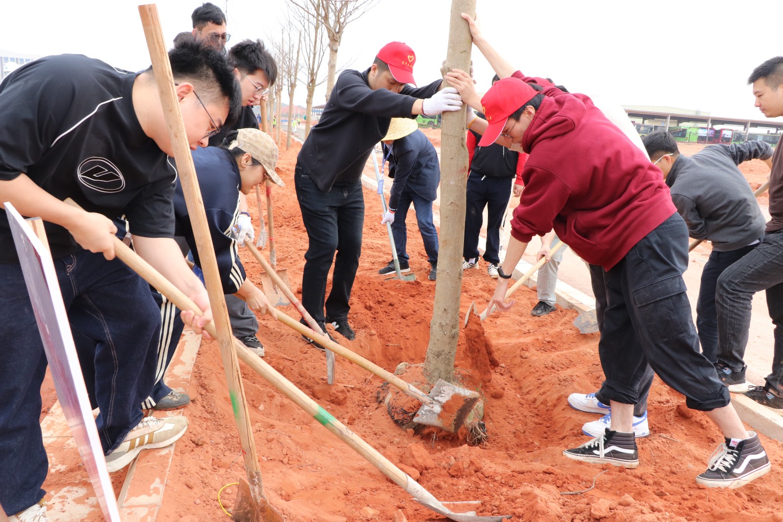 在活動現(xiàn)場,50余名黨員和積極分子、青年志愿者一道齊心協(xié)力,栽下了友誼之樹。大家干勁十足,揮鍬鏟土,扶樹培苗,澆水灌溉,一片忙碌景象。經(jīng)過一陣辛勤勞動,雖然每個人雙手、鞋子都沾滿了泥土,但看到一棵棵新植的小葉欖在南寧東部新城六景工業(yè)園區(qū)五個產(chǎn)城項目緯十一路綠化帶上昂然挺立,大家充滿了成就感和自豪感。